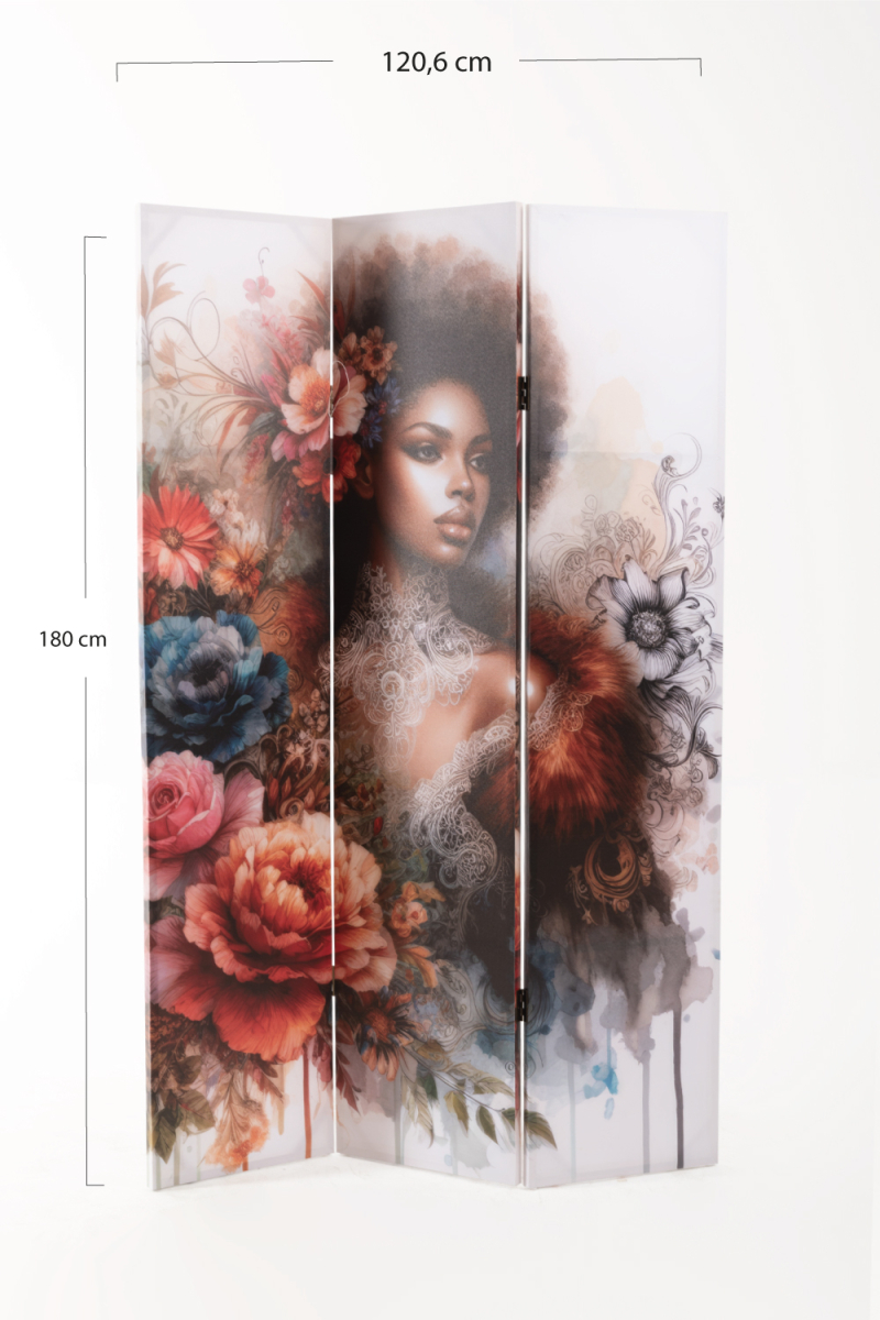 Biombo Tarne Material : Estructura de madera - Acabado en lienzo impreso Alto : 180 cm Ancho : 120,6 cm Profundo : 2,5 cm En stock. Envío en 5-7 días hábiles
