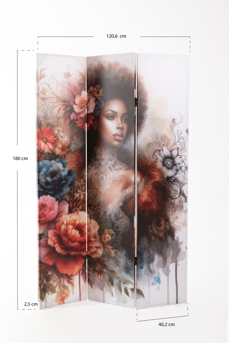 Más allá de su función como divisor, este biombo funciona como elemento decorativo por sí solo: su acabado impreso lo convierte en un objeto de diseño que mejora la ambientación de la estancia sin necesidad de ocupar mucho espacio.