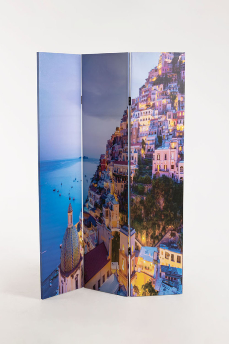 Biombo Tarne Material : Estructura de madera - Acabado en lienzo impreso Alto : 180 cm Ancho : 120,6 cm Profundo : 2,5 cm En stock. Envío en 5-7 días hábiles