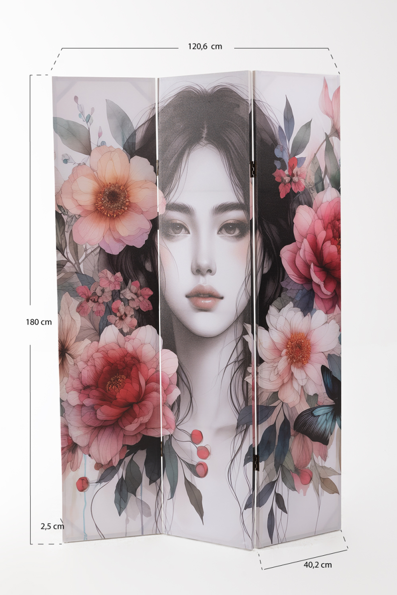 Biombo Seli Material : Estructura de madera - Acabado en lienzo impreso Alto : 180 cm Ancho : 120,6 cm Profundo : 2,5 cm En stock. Envío en 5-7 días hábiles