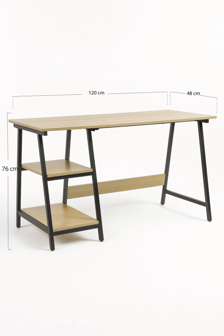 Escritorio Tislof Altura : 74 cm Ancho : 120 cm Profundidad : 60 cm Medidas del tablero : 120 cm x 60 cm Altura primera balda : 28 cm Altura segunda... En stock. Envío en 5-7 días hábiles
