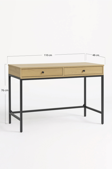 Escritorio Kendall Material tablero : Madera Material estructura : Metal Largo : 110 cm Ancho : 48 cm Alto : 76 cm Medidas del tablero : 110 cm x 48 cm En stock. Envío en 5-7 días hábiles