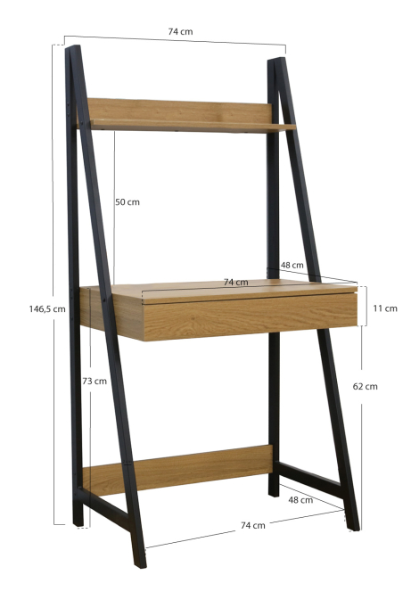 Escritorio Trek Altura total : 146,5 cm. Ancho : 74 cm. Profundo : 48 cm. Altura hasta el escritorio : 74 cm. Medidas del tablero : 74 x 48 cm. Ancho... En stock. Envío en 5-7 días hábiles