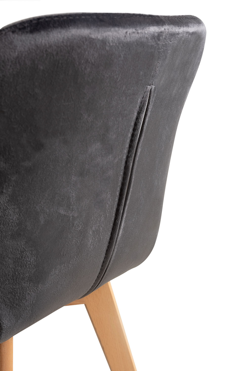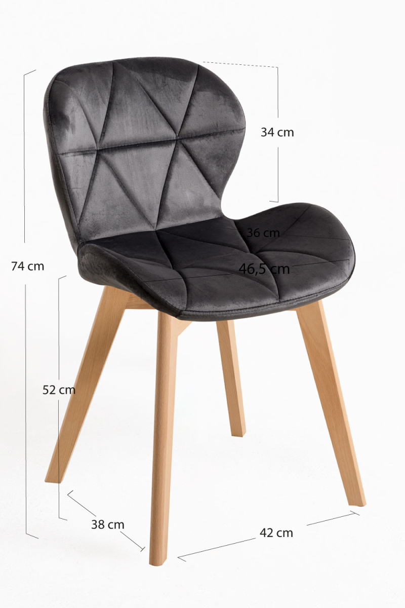 La combinación de terciopelo y estructura de madera garantiza confort y resistencia al uso diario. Esta silla es ideal tanto para el hogar como para entornos contract gracias a su diseño cuidado y su acabado de calidad.