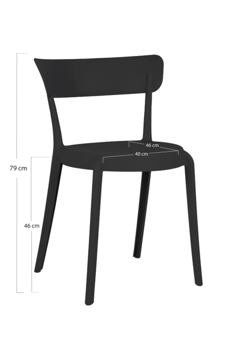 Silla Clerci Altura : 79 cm. Altura hasta el asiento : 46 cm. Ancho asiento : 40 cm. Profundidad : 46 cm. Peso : 3,5 kg. Material del asiento :... En stock. Envío en 5-7 días hábiles