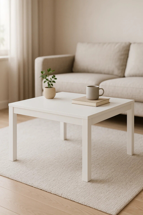 Mesa Centro Nait 60x60cm Blanco Altura : 48 cm. Ancho : 60 cm. Profundidad : 60 cm. Medidas de la placa : 60 x 60 cm. Peso : 7,50 kg. Material del tablero : Madera.... En stock. Envío en 5-7 días hábiles