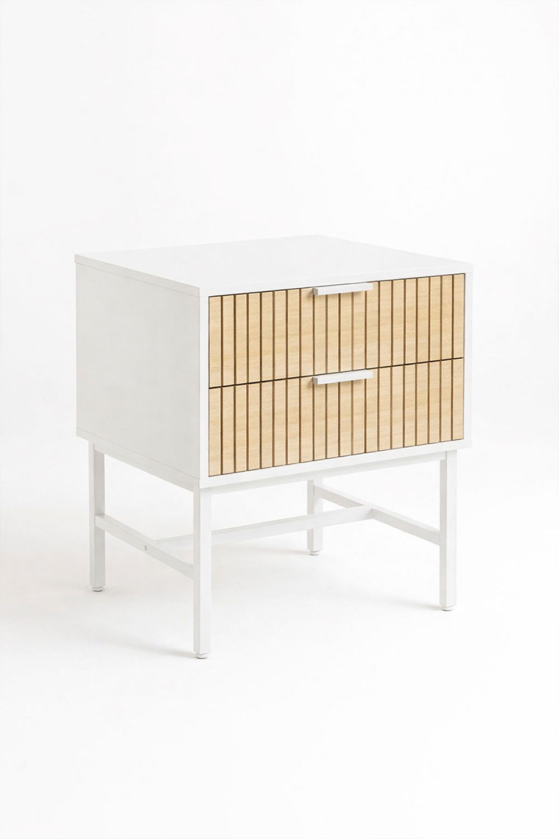 La Mesita Noche Cesdo es una mesa auxiliar diseñada para integrarse tanto en espacios domésticos como profesionales, aportando funcionalidad sin renunciar al estilo. Su estructura combina un tablero en MDF con patas de metal, resultando en un diseño ligero pero resistente.