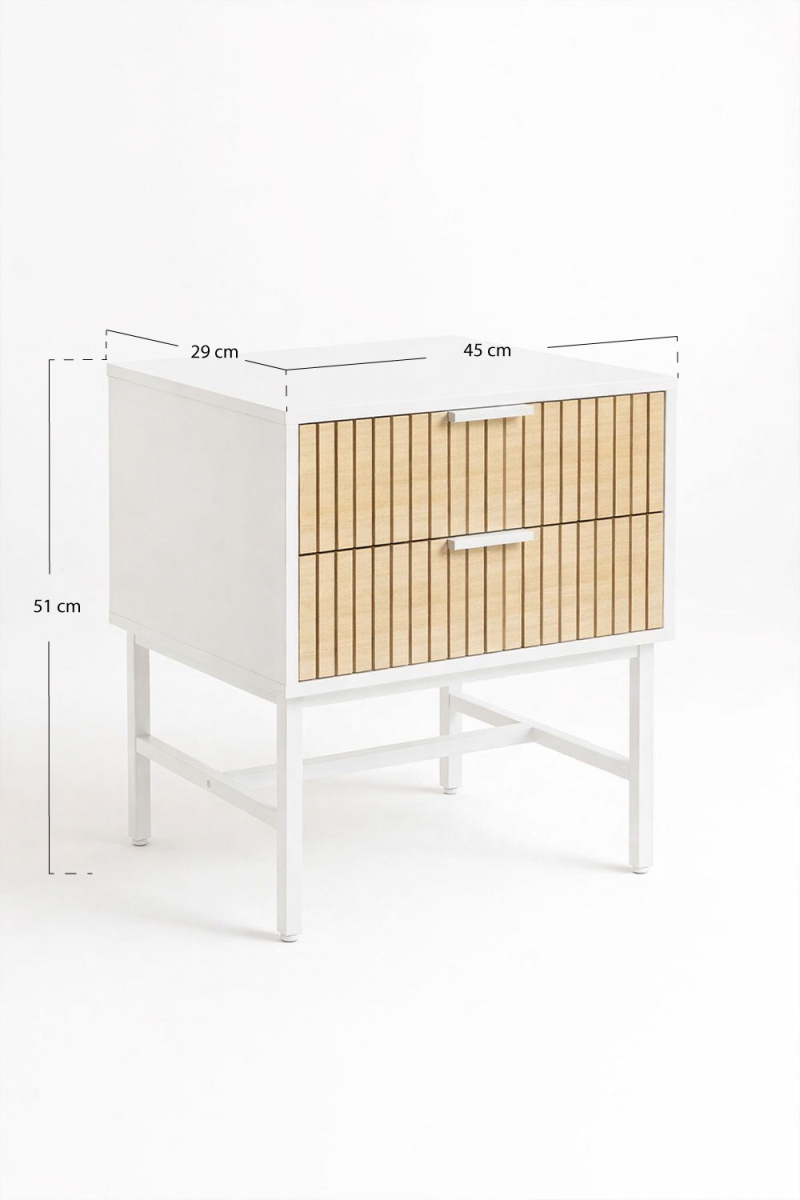 Con una altura de 51 cm, un ancho de 45 cm y una profundidad de 29 cm, y un peso de 13,5 kg, la Mesita Noche Cesdo es compacta y fácil de ubicar en espacios reducidos como despachos, rincones de lectura o junto a la cama.