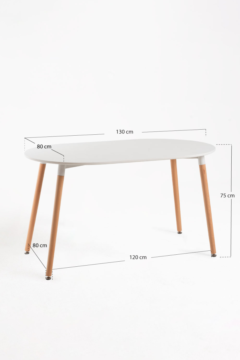 El tablero está fabricado en madera lacada, lo que garantiza una superficie lisa, resistente y fácil de limpiar. Su estructura de madera de haya aporta estabilidad y un acabado natural que potencia el carácter nórdico del diseño.