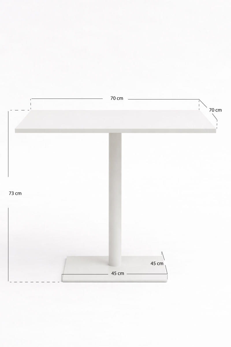 Con una altura de 73 cm, medidas del tablero de 70 × 70 cm y un diámetro de base de 45 cm, esta mesa ofrece una presencia equilibrada que no requiere demasiado espacio mientras permite una cómoda experiencia de uso diario. Su peso de 15 kg refuerza su estabilidad, y su diseño Urbano-industrial se adapta tanto a ambientes domésticos como profesionales.