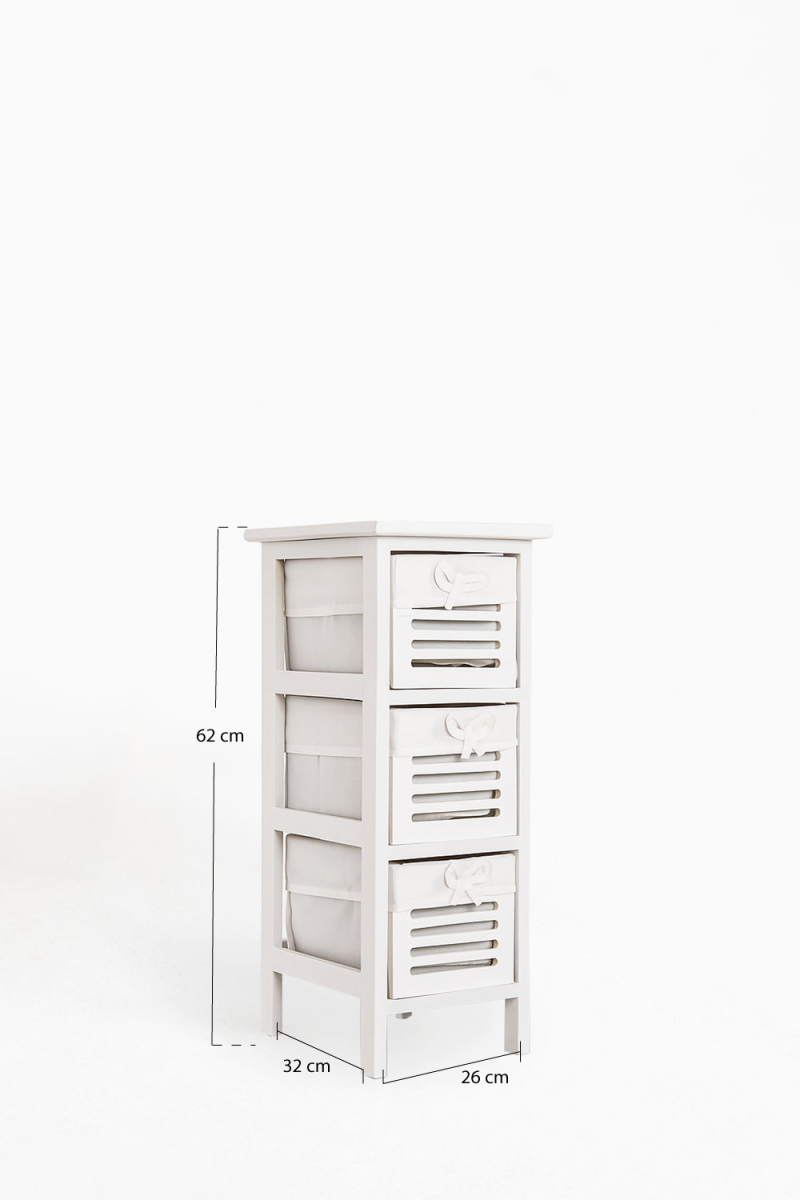La Cajonera Estrecha Kirota 3 Cajones es una solución auxiliar ideal para optimizar rincones estrechos de tu hogar u oficina. Con su diseño compacto y tres cajones amplios, permite añadir capacidad de almacenamiento donde otros muebles no caben, sin sacrificar estilo ni funcionalidad.