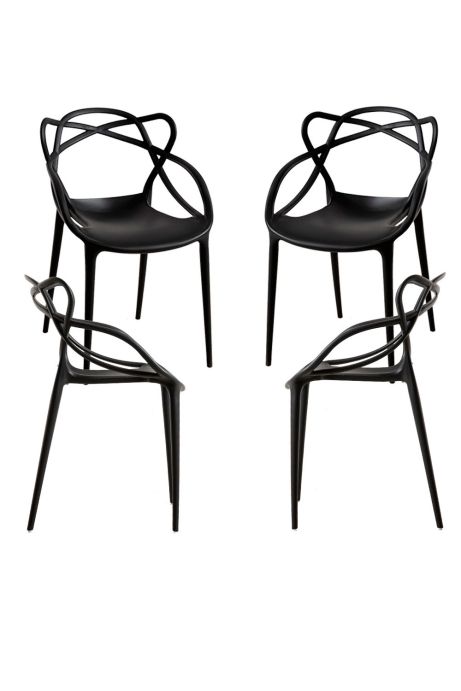 Pack compuesto por : 4 unidades Altura total : 79 cm Profundidad del asiento : 40,5 cm Ancho asiento : 39,3 cm Altura hasta el asiento :...