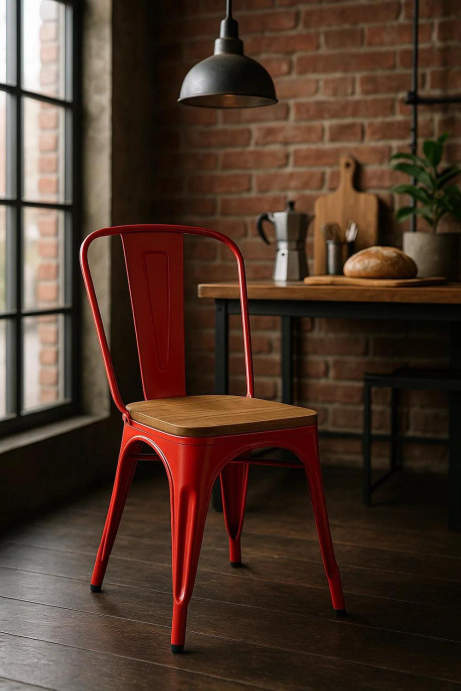 Material : Acero reforzado - Madera Ancho : 46 cm Alto : 85 cm Profundo : 46 cm Altura hasta el asiento : 44 cm
