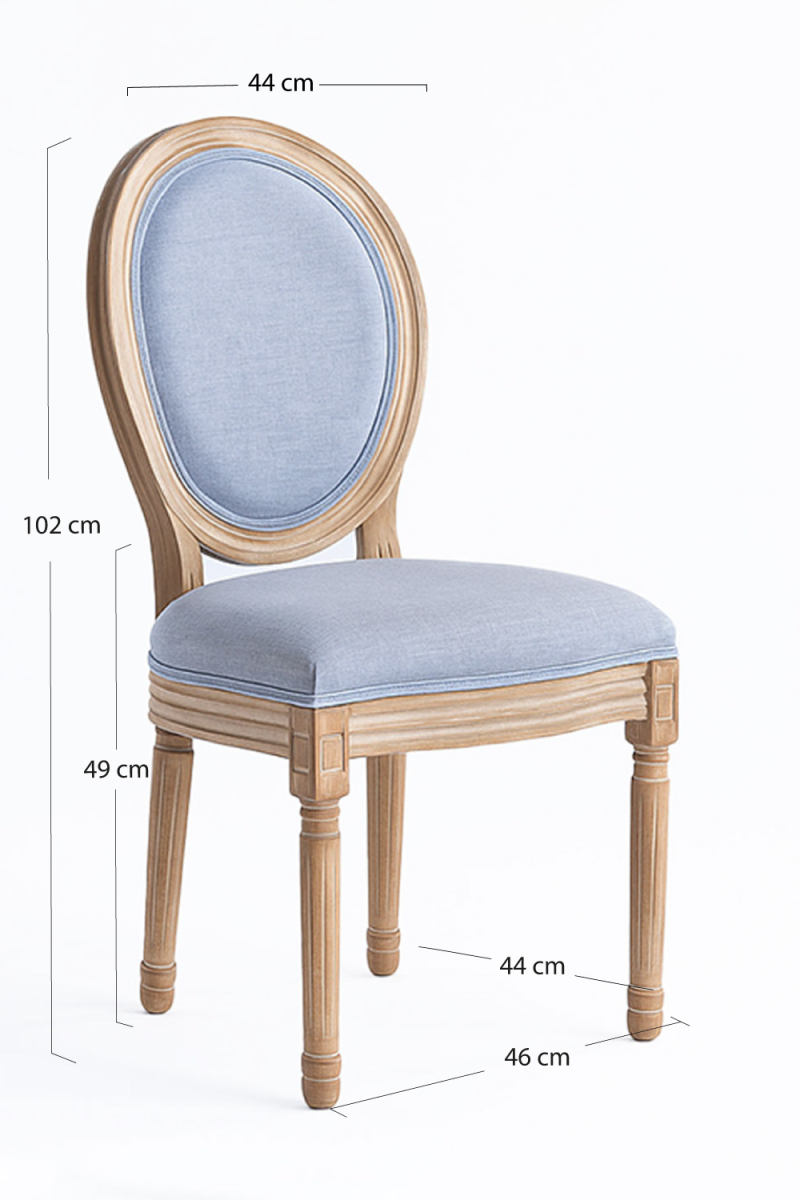 Pack 4 Sillas Palace: Si te gusta el estilo clásico porque sabes que es lo que está de moda, nuestra Silla Palace te va a sorprender.¿Por qué no convertir tu comedor o salón en un palacio? Así es el diseño de esta silla de estilo nórdico, en tonos claros y muy elegantes.Se trata de una silla fabricada con madera de olmo en su color natural y con el asiento de espuma forrado en tela beige.Es una silla manejable, de 102 centímetros de altura total y 6,5 kilogramos de peso, detalles que la hacen muy resistente, con la capacidad de soportar hasta 120 kilogramos de peso.Además, es muy cómoda, tanto en el respaldo como en el asiento, en los que puedes notar el efecto acolchado.Y te entrará por los ojos porque tiene esas sofisticadas formas palaciegas con el respaldo circular y unos elegantes acabados en la madera.