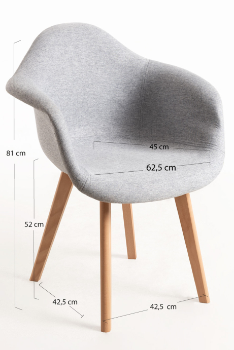 Silla Kosmo Tela Gris con Respaldo Tapizado en Madera Altura total : 75 cm. Ancho : 55 cm. Profundidad : 53 cm. Altura hasta el asiento : 46 cm. Ancho asiento : 45 cm. Profundidad del... En stock. Envío en 5-7 días hábiles