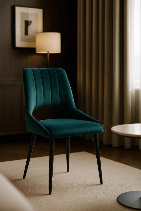 Silla Hanpe Terciopelo Patas Negras Material : Terciopelo - Acero reforzado Altura total 77 cm Altura hasta el asiento 47 cm Distancia entre patas 46 cm Ancho asiento... +1 En stock. Envío en 5-7 días hábiles