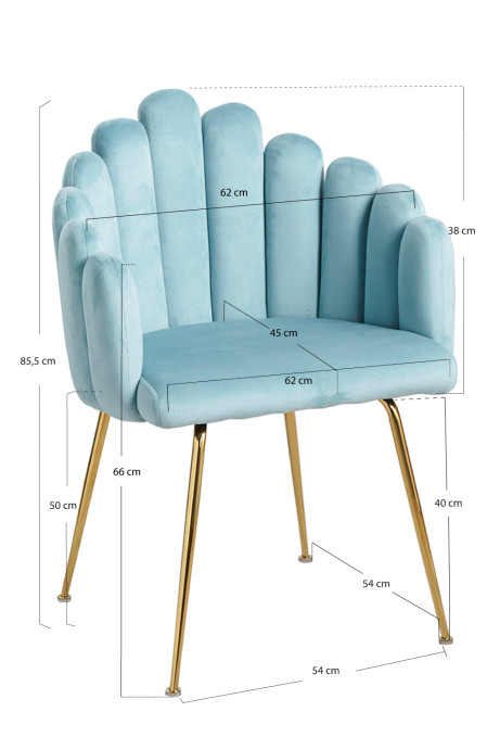 Silla Halpo Terciopelo Altura : 85,5 cm. Ancho : 62 cm. Profundidad : 54 cm. Ancho hasta el asiento : 50 cm. Altura respaldo : 38 cm. Altura patas : 40 cm.... En stock. Envío en 5-7 días hábiles