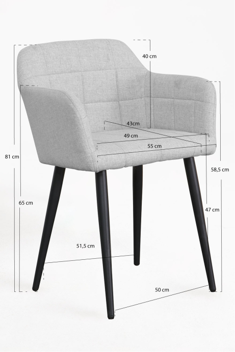 Silla Hall Tela Altura total 78 cm Profundidad del asiento 44 cm Ancho asiento 44 cm Altura hasta el asiento 46,5 cm Ancho Respaldo 54 cm Altura... En stock. Envío en 5-7 días hábiles