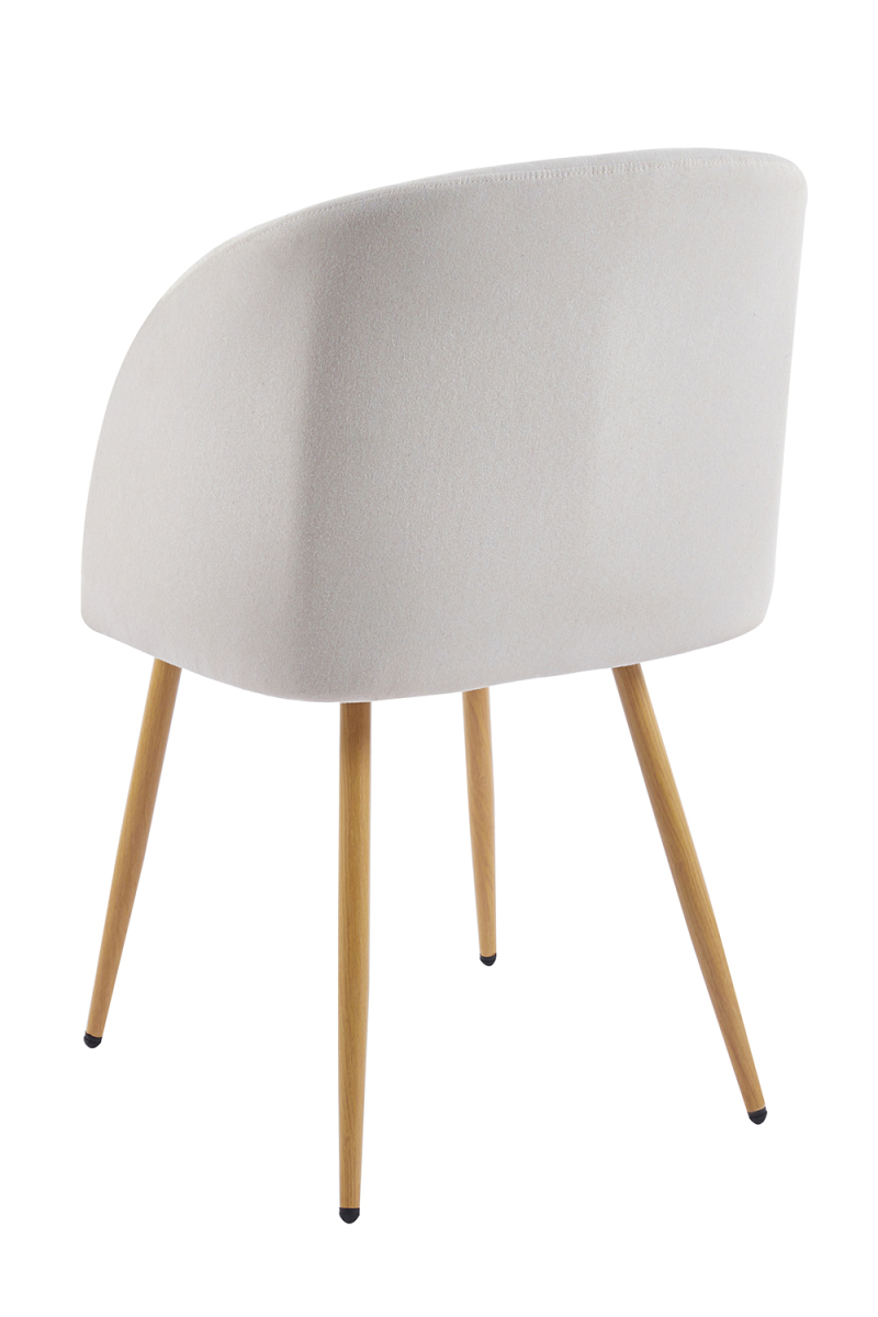 Se trata de una preciosa silla de estilo nórdico y tipo butaca fabricada en acero reforzado y terminada en madera, con un asiento de tela que le da un aspecto muy atractivo.