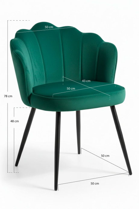 Esta silla destaca por sus líneas definidas y una silueta que combina sofisticación visual con comodidad, creando un asiento que invita al uso cotidiano sin perder su atractivo decorativo. El tapizado en terciopelo aporta una textura suave al tacto y un acabado visual enriquecido que contribuye a una sensación de calidez y estilo dentro del espacio.