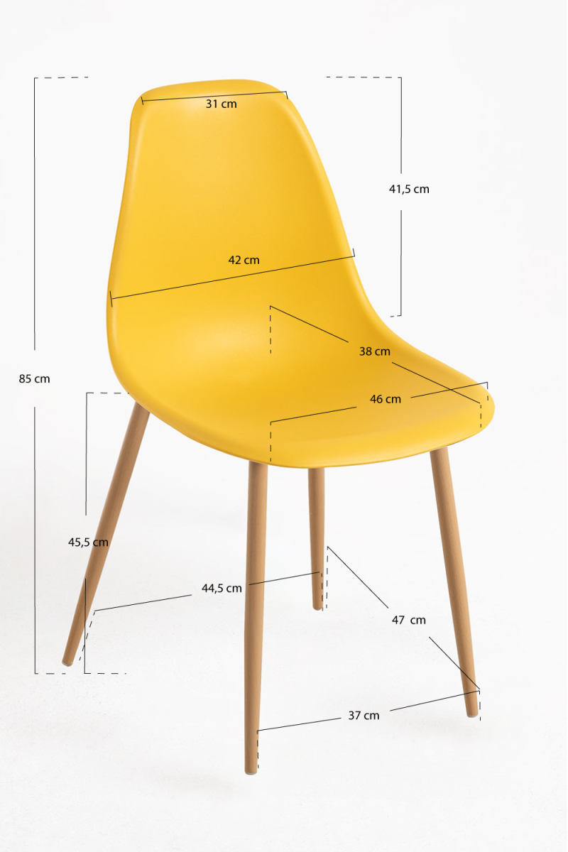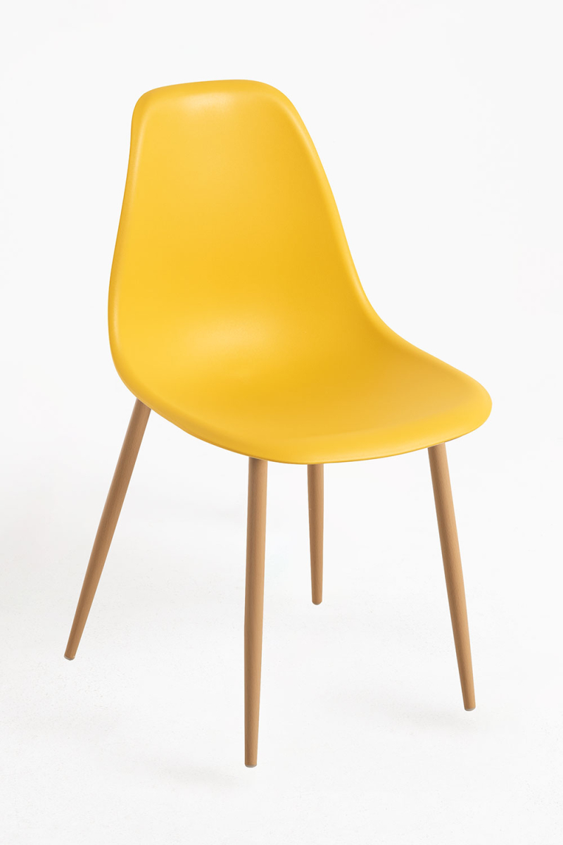 El asiento y el respaldo son una única pieza de polipropileno, un polímero muy resistente y muy utilizado entre los años 50 y 2000. Este material permite un acabado de elevada calidad, pero además fija muy bien los colores, de modo que está disponible en una amplia gama cromática. Un modelo muy versátil que se adapta a tus ambientes.