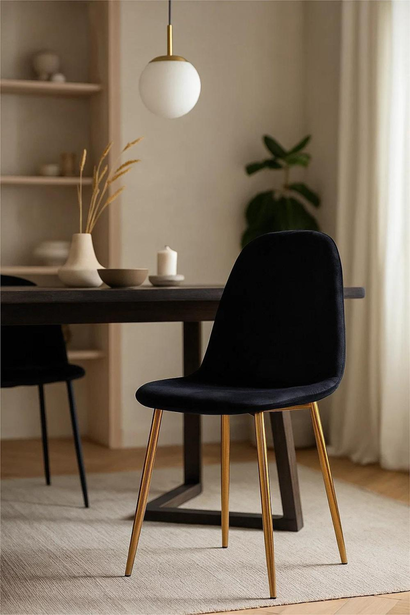 Silla Leo Black Terciopelo Material : Terciopelo - Acero reforzado Ancho : 39 cm Alto : 84 cm Profundo : 42 cm Altura hasta el asiento : 44 cm +3 En stock. Envío en 5-7 días hábiles