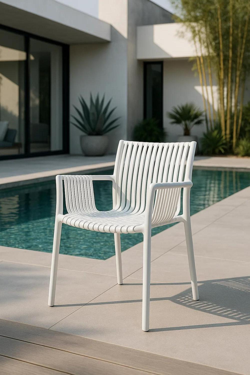 La Silla Docis destaca por su estética nórdica moderna y su gran versatilidad, siendo apta tanto para uso en interior como en exterior. Su diseño envolvente y su asiento amplio ofrecen una experiencia cómoda y funcional en cualquier espacio, ya sea en el comedor, la cocina o el jardín.