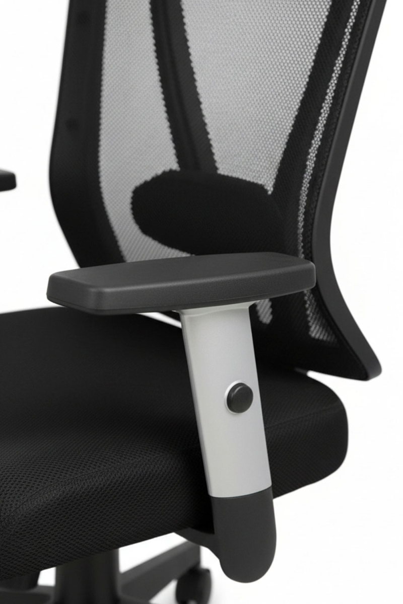 Asiento con espuma de alta densidad. El relleno del asiento incorpora espuma con densidad de 50 kg/m³ que proporciona una superficie firme y estable. Esta base mantiene su forma con el uso y contribuye a una postura adecuada durante las tareas de escritorio.