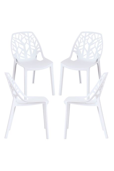 Sus formas son muy vanguardistas y el respaldo cuenta con un original dibujo calado que recuerda a los troncos y las ramas de los árboles.