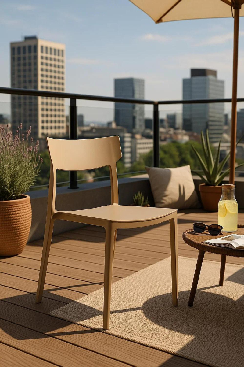 Con un diseño limpio y contemporáneo, la Silla Dolan ofrece una excelente ergonomía gracias a su asiento amplio y su estructura envolvente. Ideal para crear espacios ordenados, frescos y cómodos tanto en interiores como en exteriores.