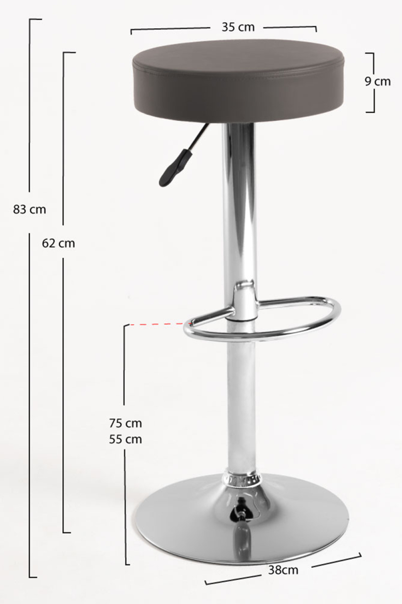 Pack compuesto por : 4 Unidades Material asiento : Polipiel Material estructura : Acero reforzado Ancho : 38 cm Altura máx. / mín. : 83...