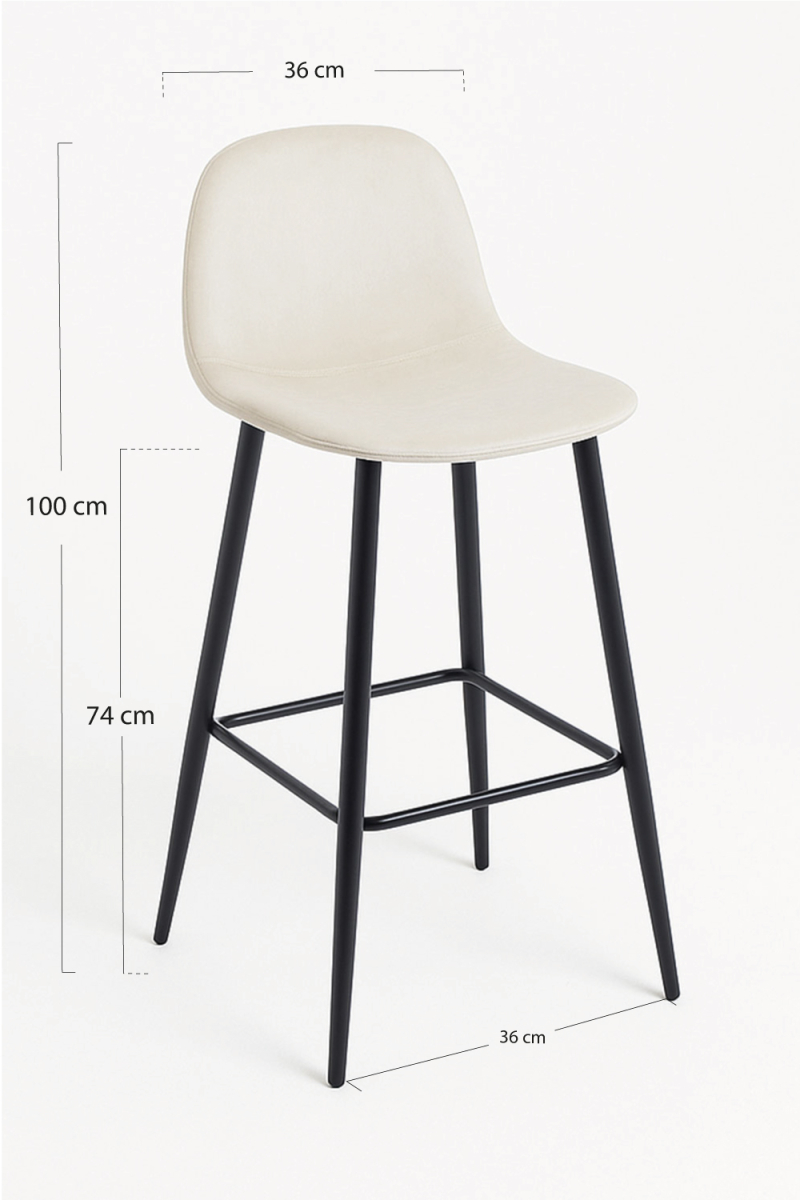 Taburete Black Leo Tela Alto : 100 cm. Alto desde el asiento : 74 cm. Alto del respaldo : 27 cm. Ancho del respaldo : 36 cm. Ancho del asiento : 38 cm.... En stock. Envío en 5-7 días hábiles