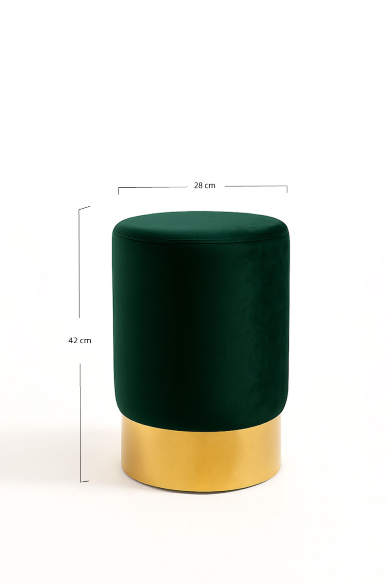 Puff Sory Terciopelo Altura total : 42 cm. Ancho : 28 cm. Profundidad : 28 cm. Peso : 3,1 kg. Material : Acolchado con espuma de alta densidad y tapizado en... En stock. Envío en 5-7 días hábiles