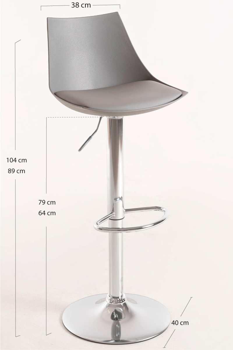 É um banqueta alta com pé único, com apoio frontal para os pés e encosto, para maior conforto. Além disso, é regulável em altura, o que lhe dará ainda mais possibilidades, já que pode variar entre um total de 89 e 104 centímetros.