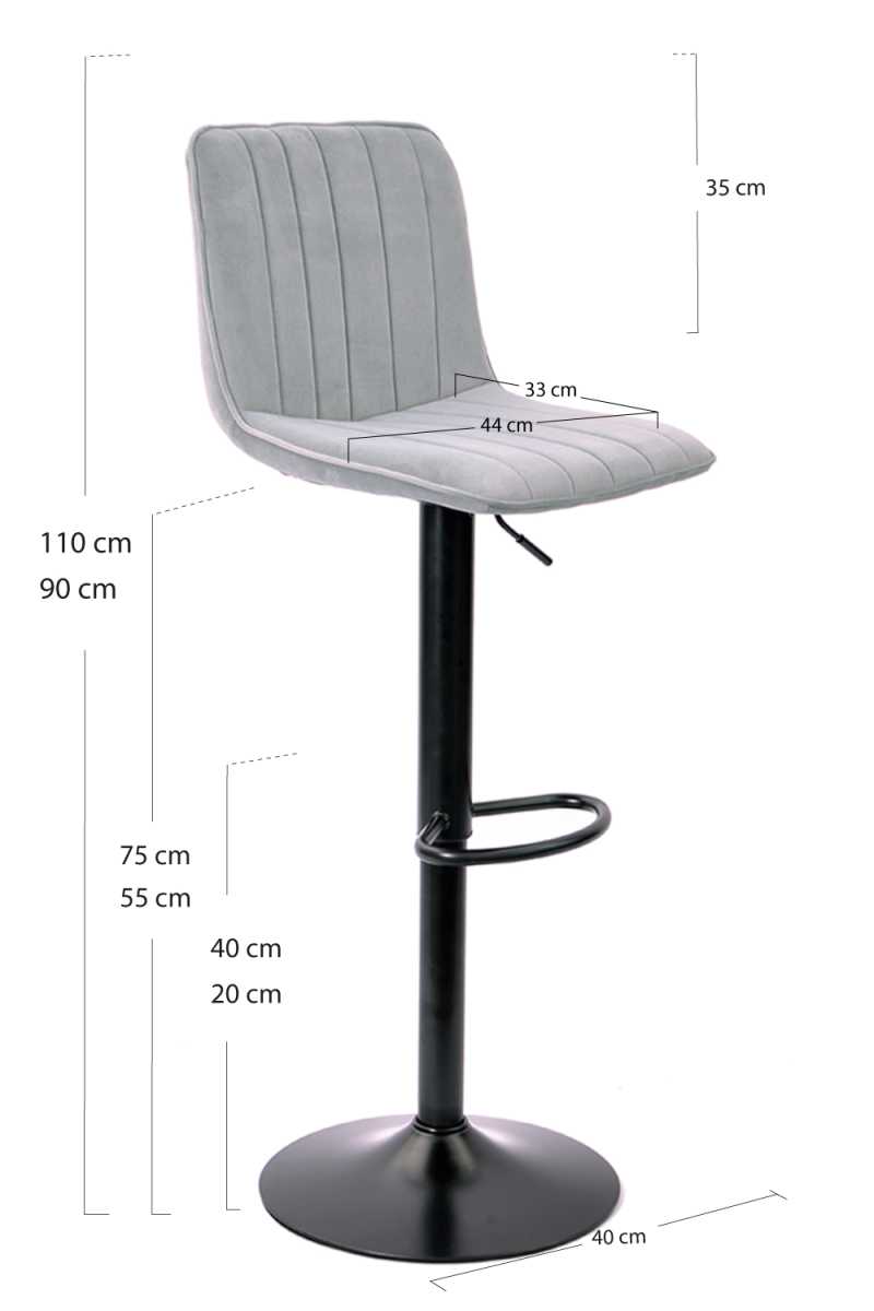 Altura : 100 cm. Altura do assento : 74 cm. Altura do encosto : 27 cm. Largura do encosto : 36 cm. Largura do assento...