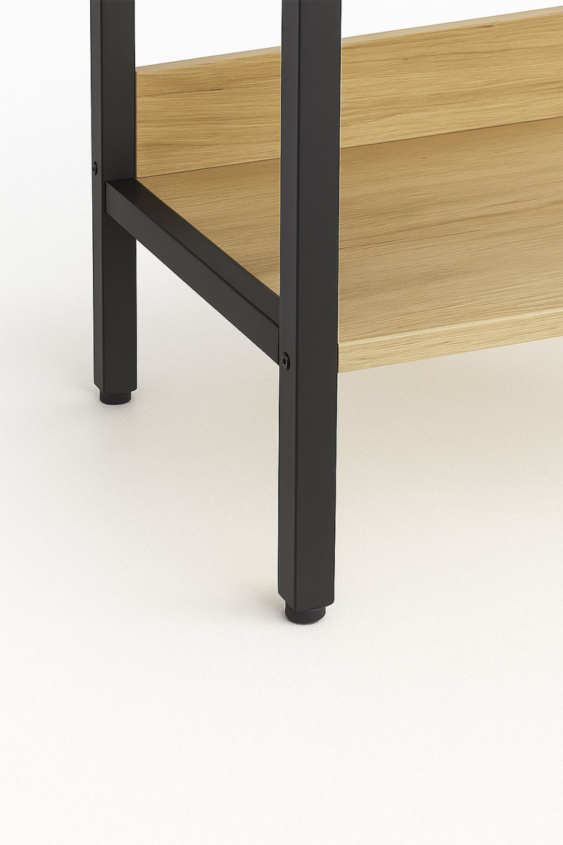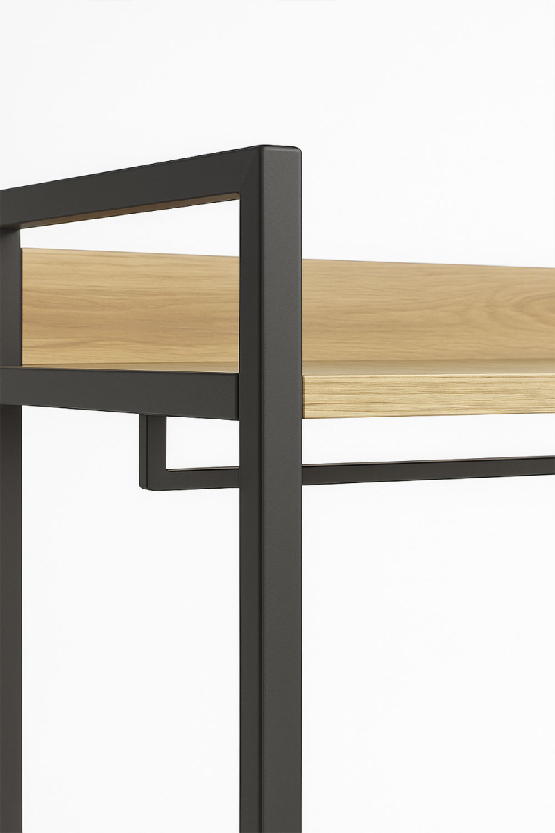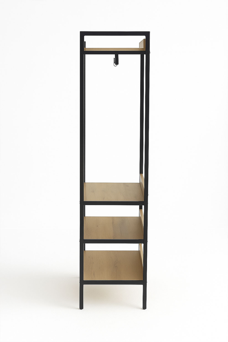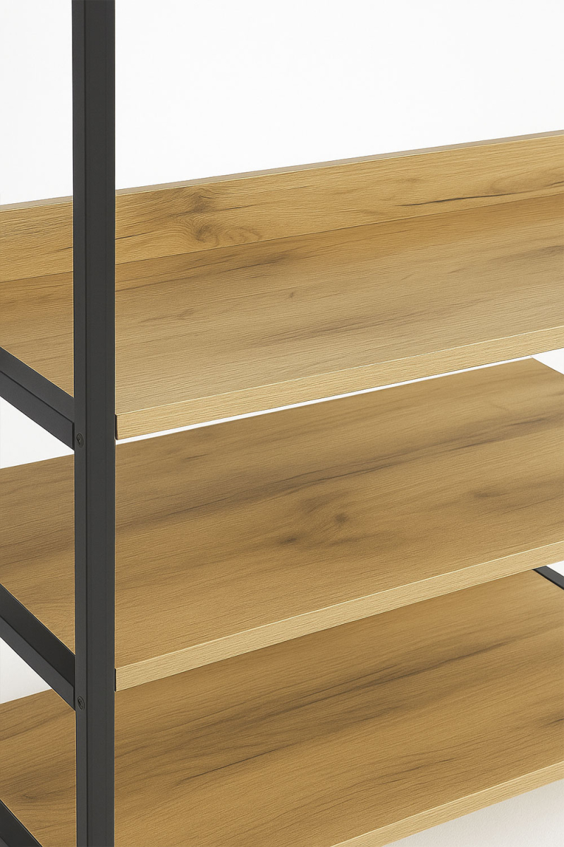 O Armário com Prateleiras Onsa 84x40x180cm é uma peça projetada para oferecer uma solução de armazenamento eficiente com estilo moderno. O seu tampo de madeira combinado com a estrutura de metal proporciona um visual contemporâneo que funciona como armário aberto para quarto, complemento no hall de entrada ou área de trabalho para escritórios ou estúdios.