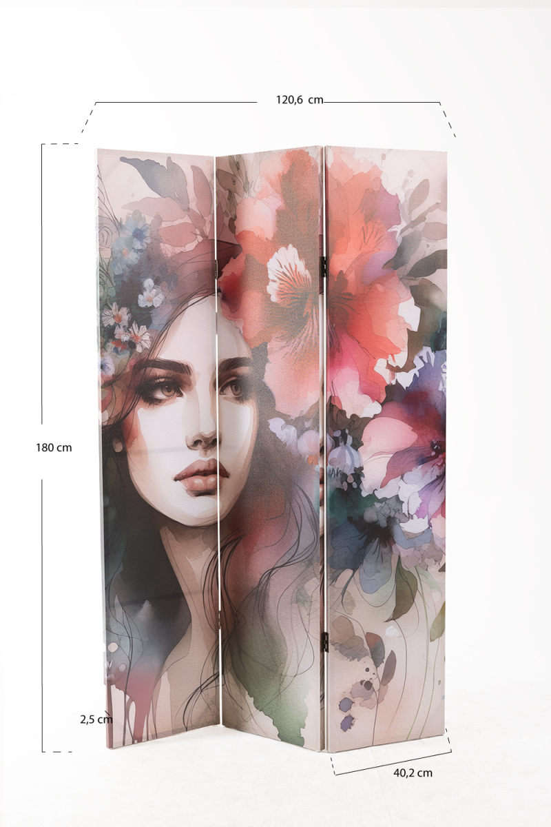 Biombo Siels Material : Estrutura de madeira - Acabamento em tela impressa Altura : 180 cm Largura : 120,6 cm Profundidade : 2,5 cm Em stock. Envio em 3 a 5 dias