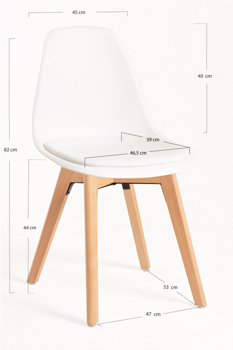 A Cadeira Dami é uma opção versátil e cheia de personalidade para a sua sala de jantar, cozinha ou área de trabalho. A sua estrutura em madeira de faia, combinada com assento em polipropileno e almofada em polipele, oferece uma estética nórdica atual e uma experiência de uso confortável e duradoura.