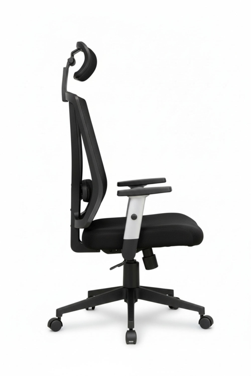 Estética nórdica de linhas simples. A Cadeira Lervi apresenta um design limpo que combina formas simples e uma silhueta definida. O seu encosto alto e a sua estrutura equilibrada criam uma presença clara no espaço de trabalho, transmitindo uma imagem profissional e organizada.