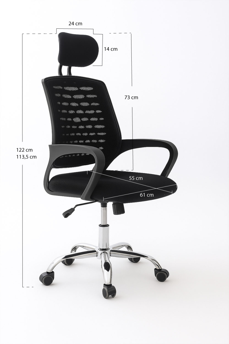 Uma escolha equilibrada que combina conforto sustentado, estrutura estável e uma estética serena, criando espaços de trabalho coerentes onde o uso diário decorre com fluidez e confiança.- Altura Total Máxima/Mínima: 122 cm / 113,5 cm