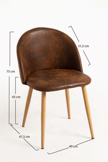 Cadeira Hill Couro Sintético Altura total : 75 cm. Profundidade do assento : 44,5 cm. Largura do Assento : 46 cm. Altura até o assento : 43 cm.... Em stock. Envio em 3 a 5 dias