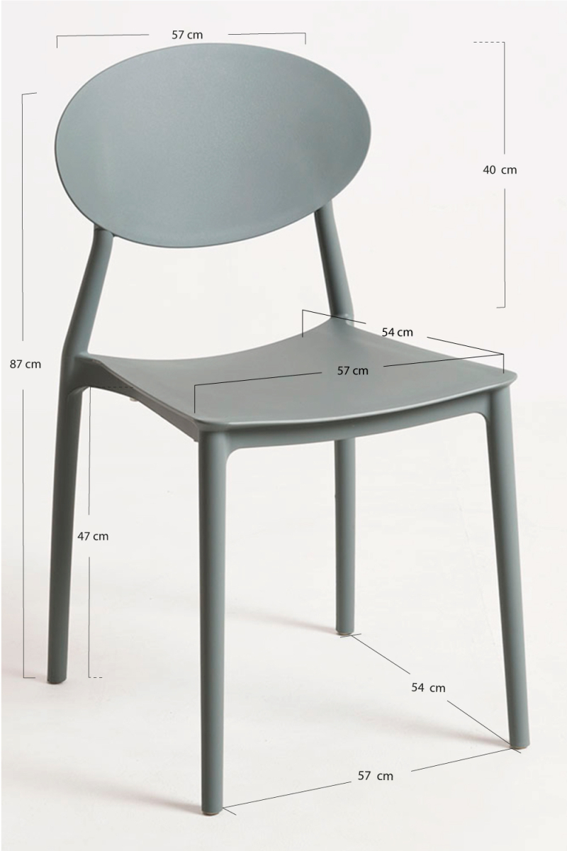 É uma cadeira cuja estrutura e assento são feitas de polipropileno, um material muito resistente que pode suportar até 120 quilos de peso.