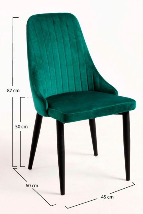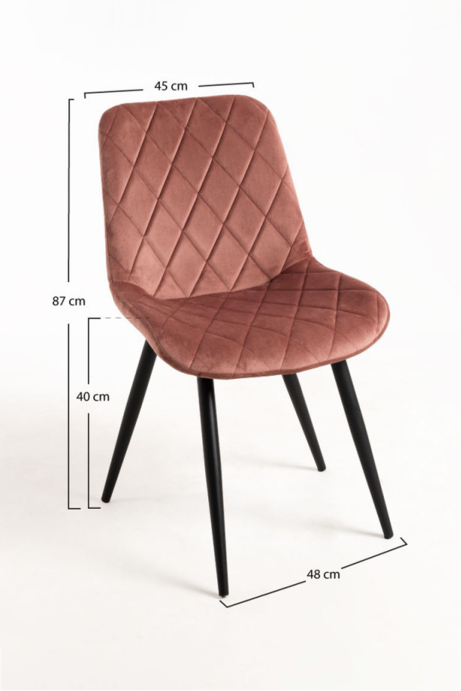 Com uma altura total de 95 cm e uma altura até ao assento de 46 cm, esta cadeira proporciona uma posição ergonómica perfeita para mesas de jantar padrão. A sua estrutura ampla, com 49 x 56 cm entre pernas, melhora a estabilidade e permite sentar-se com total conforto.