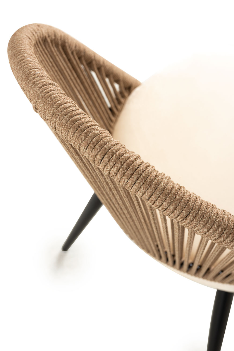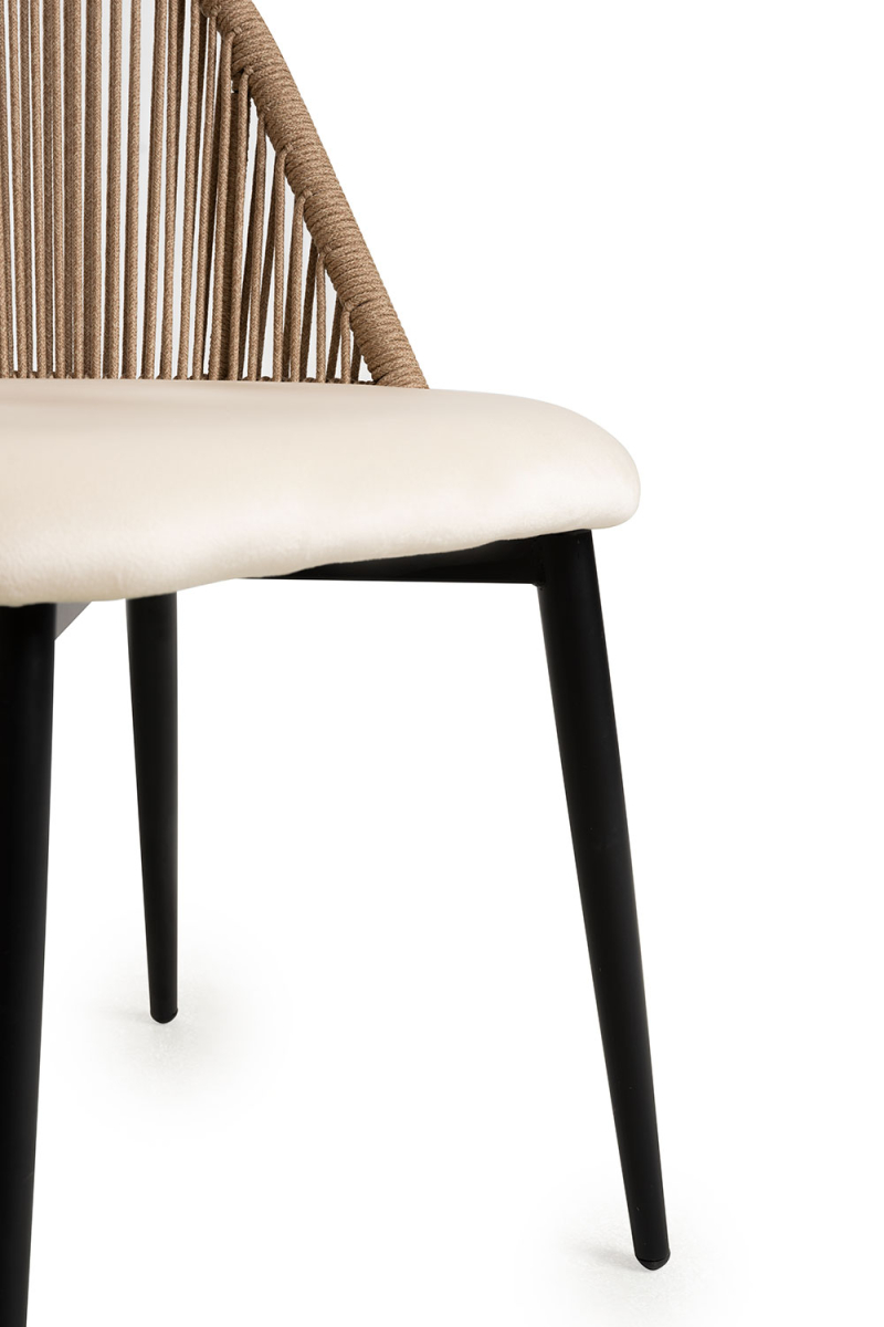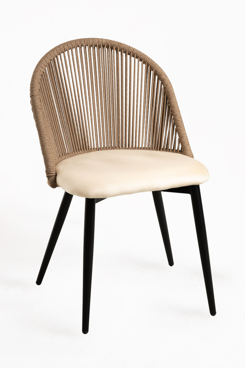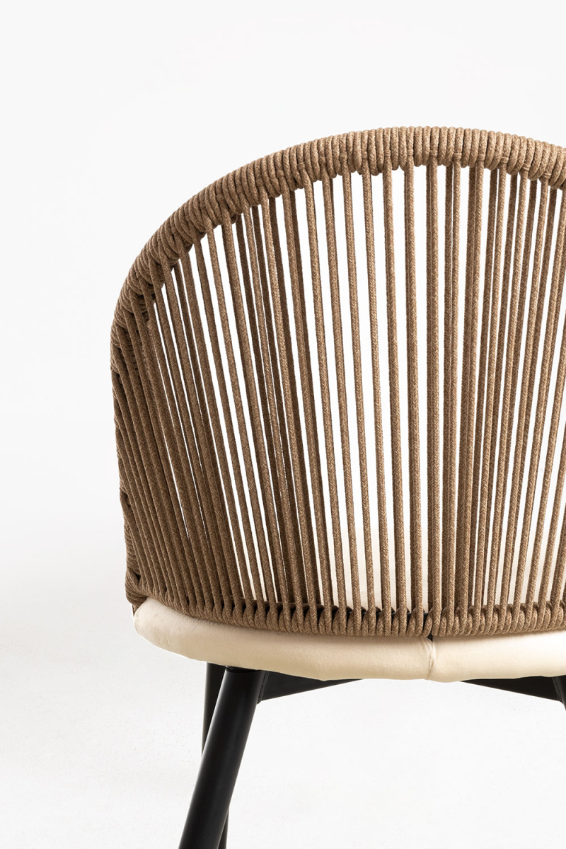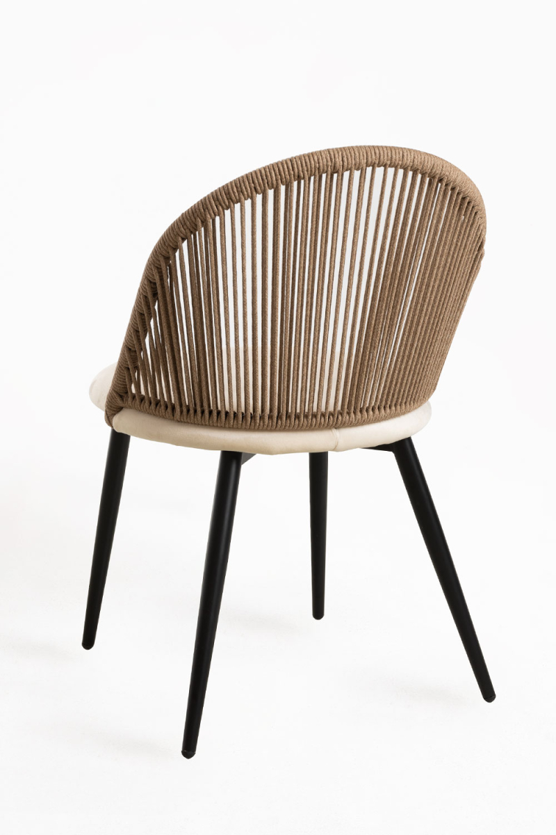 Graças à combinação de Veludo suave e Corda trançada, a Cadeira Misal destaca-se como uma cadeira de jantar de design, ideal tanto para vestir uma mesa de jantar como para acompanhar uma secretária em espaços corporativos e escritórios domésticos. A sua estética leve e o encosto trançado criam um efeito visual muito decorativo, perfeito para quem procura cadeiras que não sejam apenas confortáveis, mas também um ponto focal na decoração.