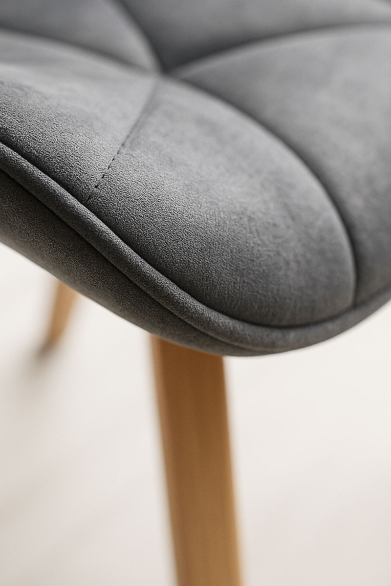 Com dimensões compactas e encosto ligeiramente curvado, a Cadeira Zie integra-se facilmente em diferentes ambientes: desde uma sala de jantar nórdica até um espaço de coworking ou sala de espera. O seu estofado aveludado adiciona textura e modernidade sem perder funcionalidade.