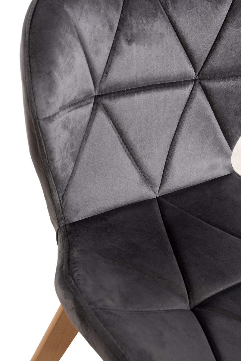 A combinação de veludo e estrutura de madeira garante conforto e resistência ao uso diário. Esta cadeira é ideal tanto para o lar como para espaços profissionais graças ao seu design cuidado e acabamento de qualidade.