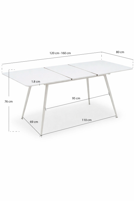 Mesa Extensível Belta Altura : 75 cm Largura dobrada : 120 cm Largura estendida : 160 cm Profundidade : 80 cm Peso : 33 kg Material do tampo : Madeira.... Em stock. Envio em 3 a 5 dias