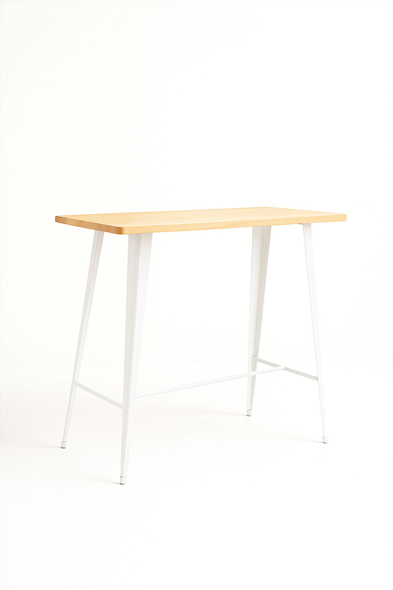 A mesa alta rectangular de madeira natural é uma mesa alta de estilo industrial pensada para quem precisa de uma superfície robusta, funcional e com muita personalidade no comedor, barra ou local. Seu tampo de madeira natural e sua estrutura de aço reforçado formam um conjunto sólido e atraente, perfeito para criar espaços atuais tanto em lares como em negócios de hospedagem.