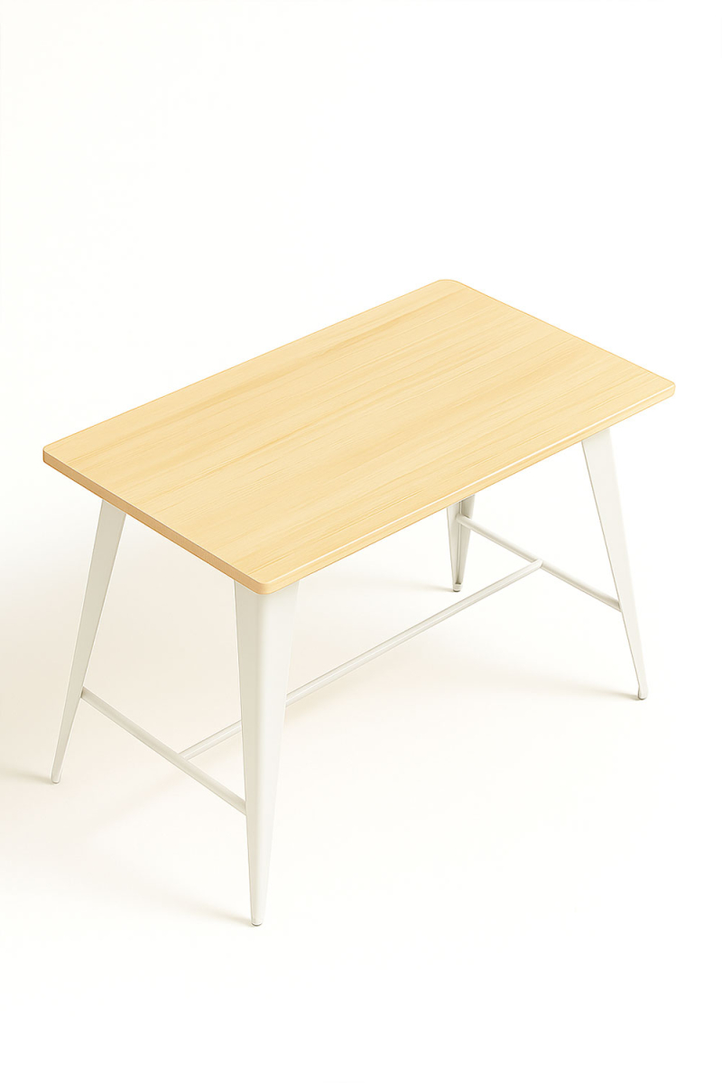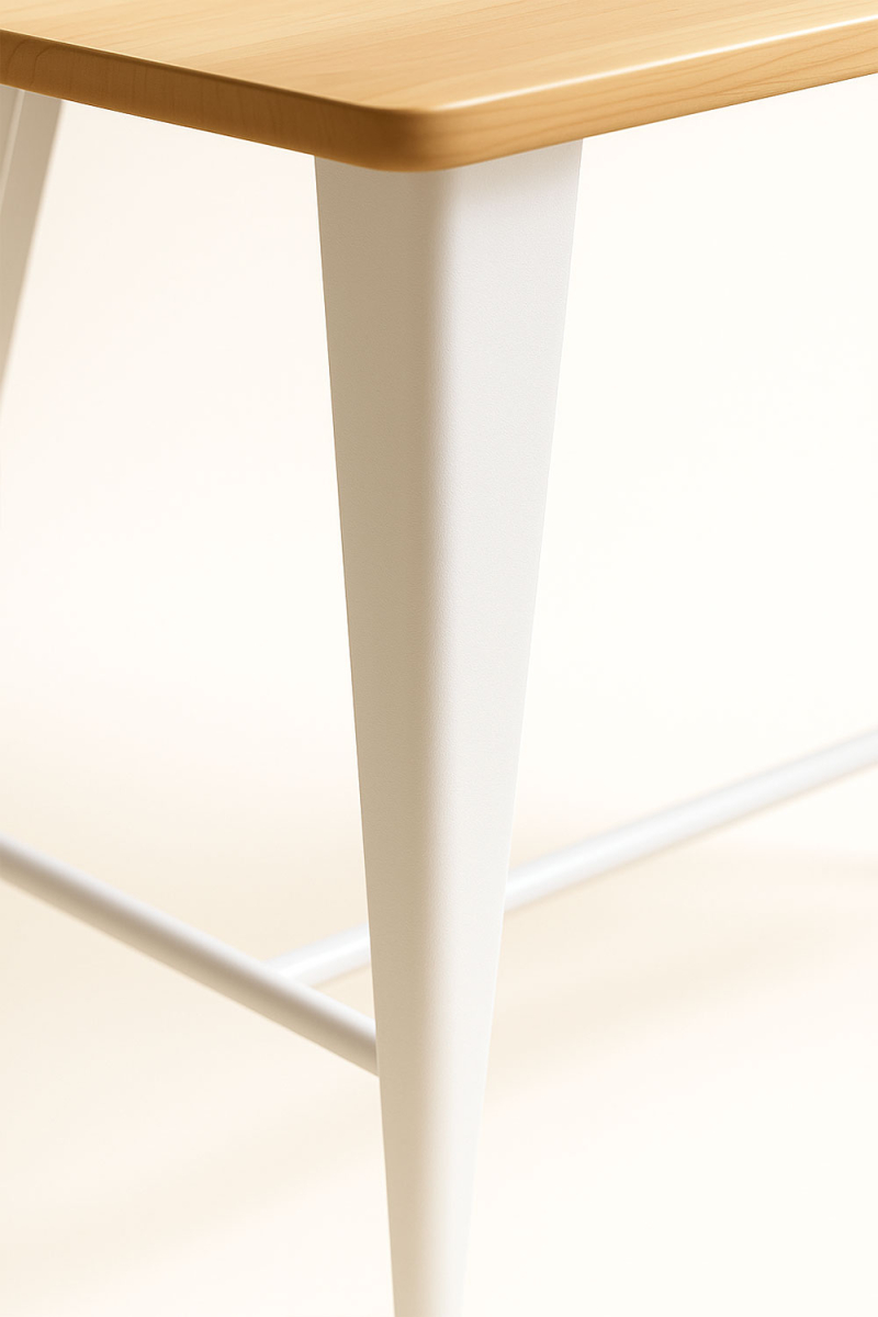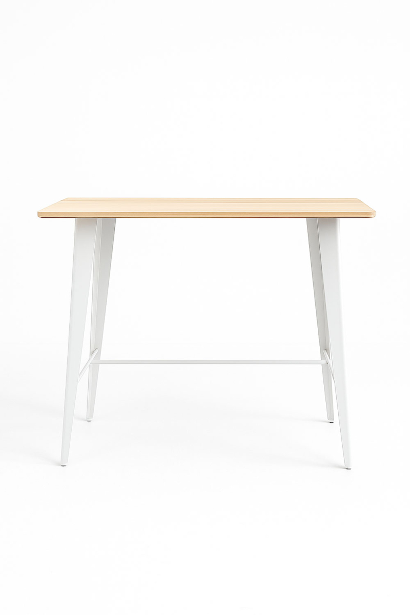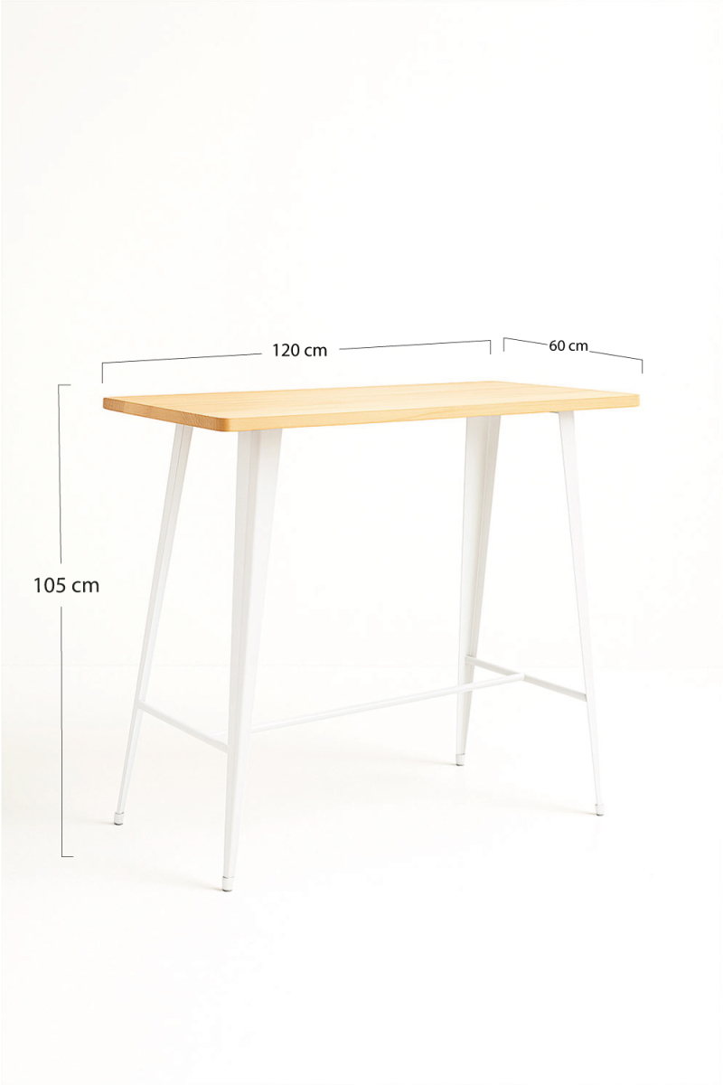 O tampo em madeira natural oferece calor visual e um toque agradável, enquanto a base em aço reforçado garante estabilidade mesmo em uso intensivo. Com uma altura de 105 cm, esta mesa alta está projetada para combinar com bancos e criar uma postura confortável ao comer, trabalhar ou compartilhar um café. Sua resistência permite suportar até 100 kg, tornando-a uma opção confiável para ambientes profissionais exigentes.