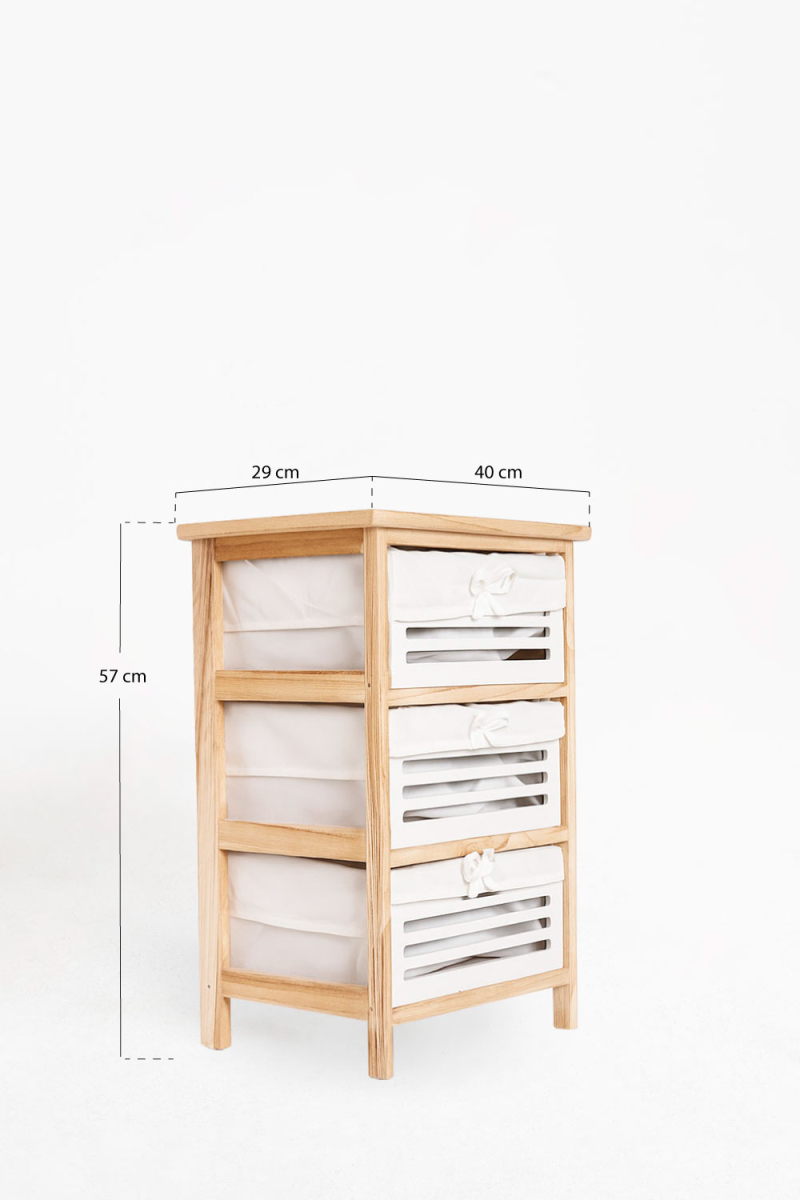 Cómoda Estreita Taroki 3 Gavetas Altura : 62 cm. Largura : 26 cm. Profundidade : 32 cm. Peso : 3 kg. Material : Madeira Garantia : 3 anos 100 dias para trocas ou... Em stock. Envio em 3 a 5 dias